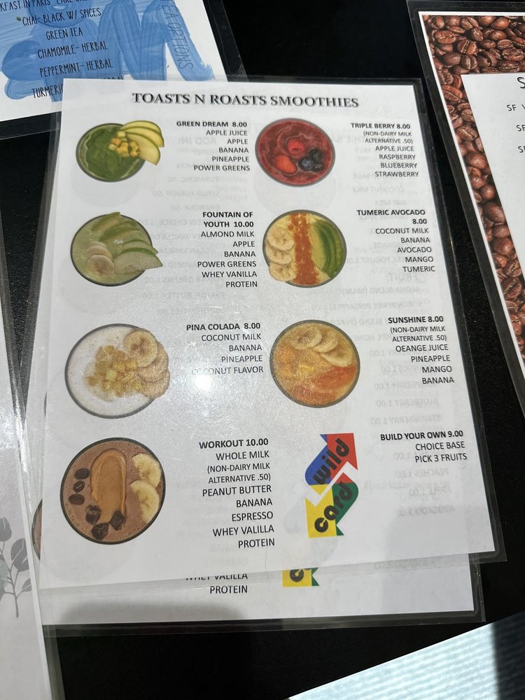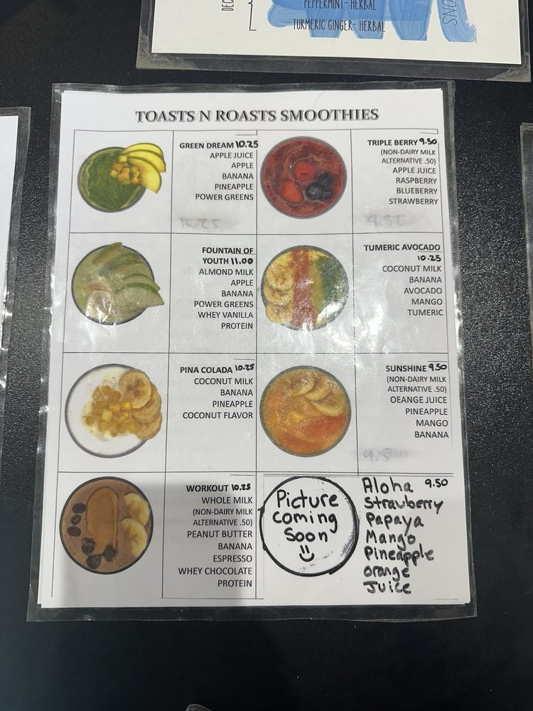 Toasts n Roasts, a charming establishment located in Denver, delights customers with a delightful array of donuts, coffee, tea, and brunch options. With a focus on quality and diversity, they offer vegan options and cater to various dietary preferences. The welcoming atmosphere, attentive staff, and diverse menu keep patrons coming back for more. Toasts n Roasts stands out with its exceptional avocado toast, flavorful smoothies, and perfectly brewed coffee. Customers rave about the generous portions, attention to detail in presentation, and overall enjoyable dining experience. Whether you're in the mood for a cozy breakfast or a relaxing coffee break, Toasts n Roasts has something for everyone. Make sure to try their specialty dishes like the avocado toast and unique coffee flavors for a truly satisfying visit.